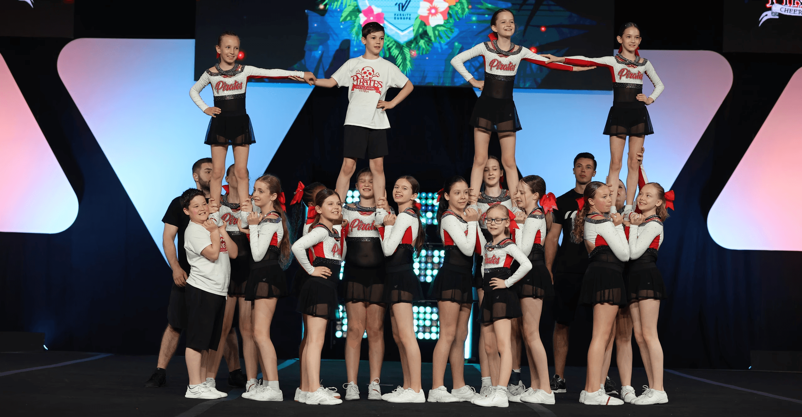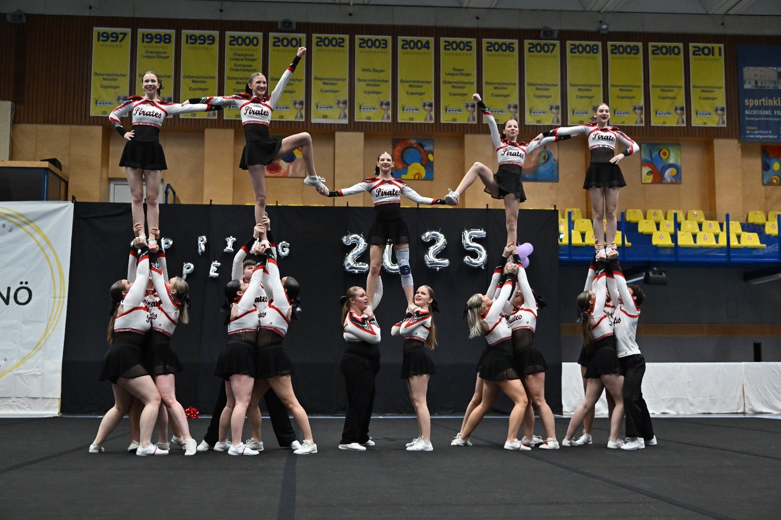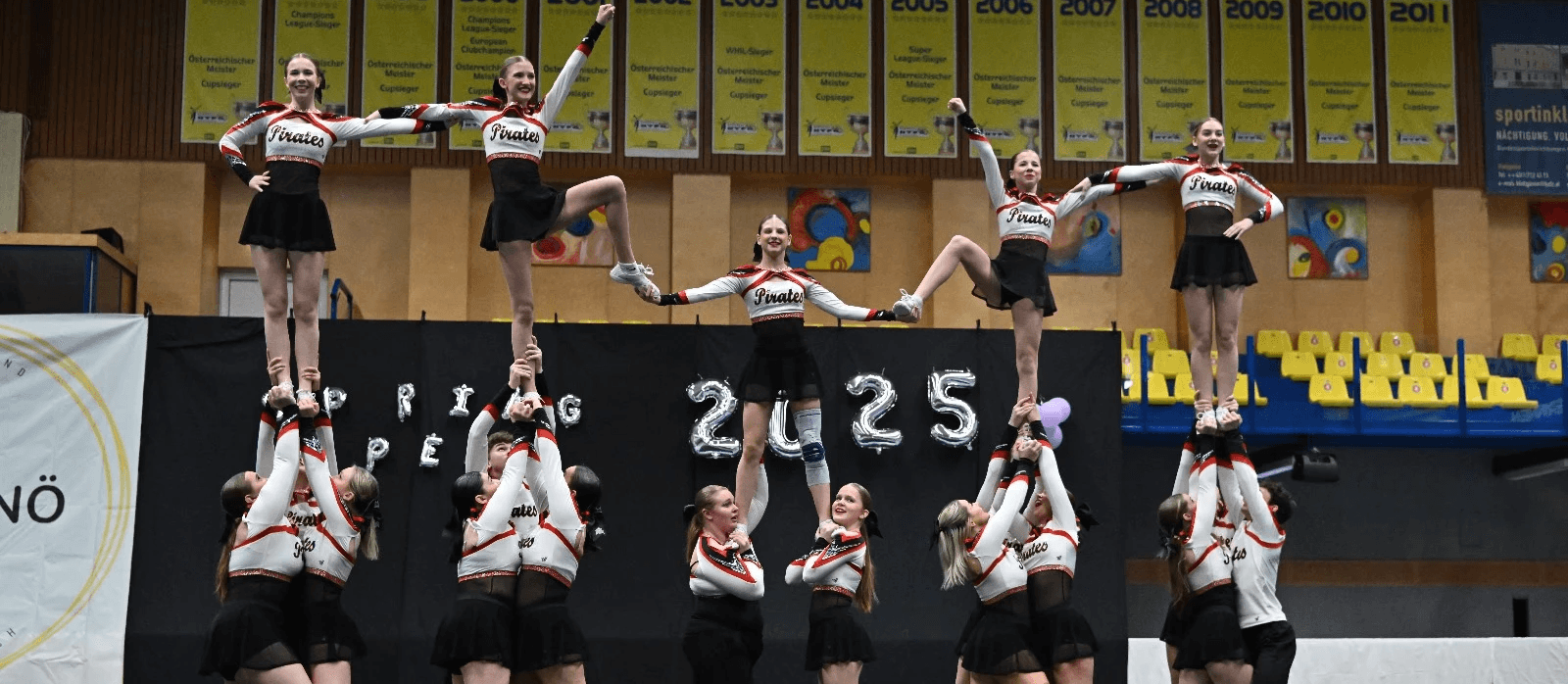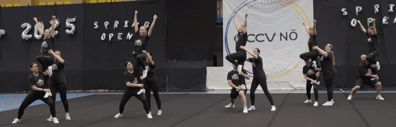 Unsere dynamischen Auftritte mit starken Choreografien, bei denen spektakuläre Stunts, präzise Pyramiden und energiegeladene Cheers im Mittelpunkt stehen, kennzeichnen uns aus. Wir nehmen regelmäßig an nationalen und internationalen Wettkämpfen teil und streben stets nach Weiterentwicklung – im sportlichen sowie im persönlichen Sinne.