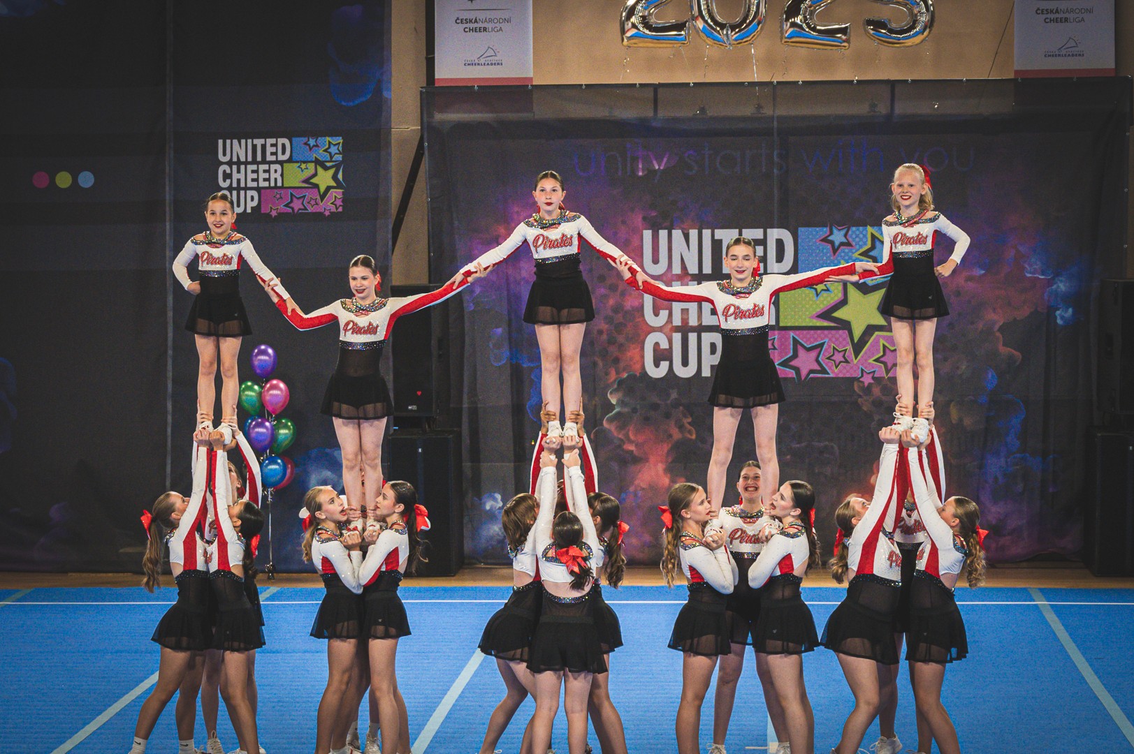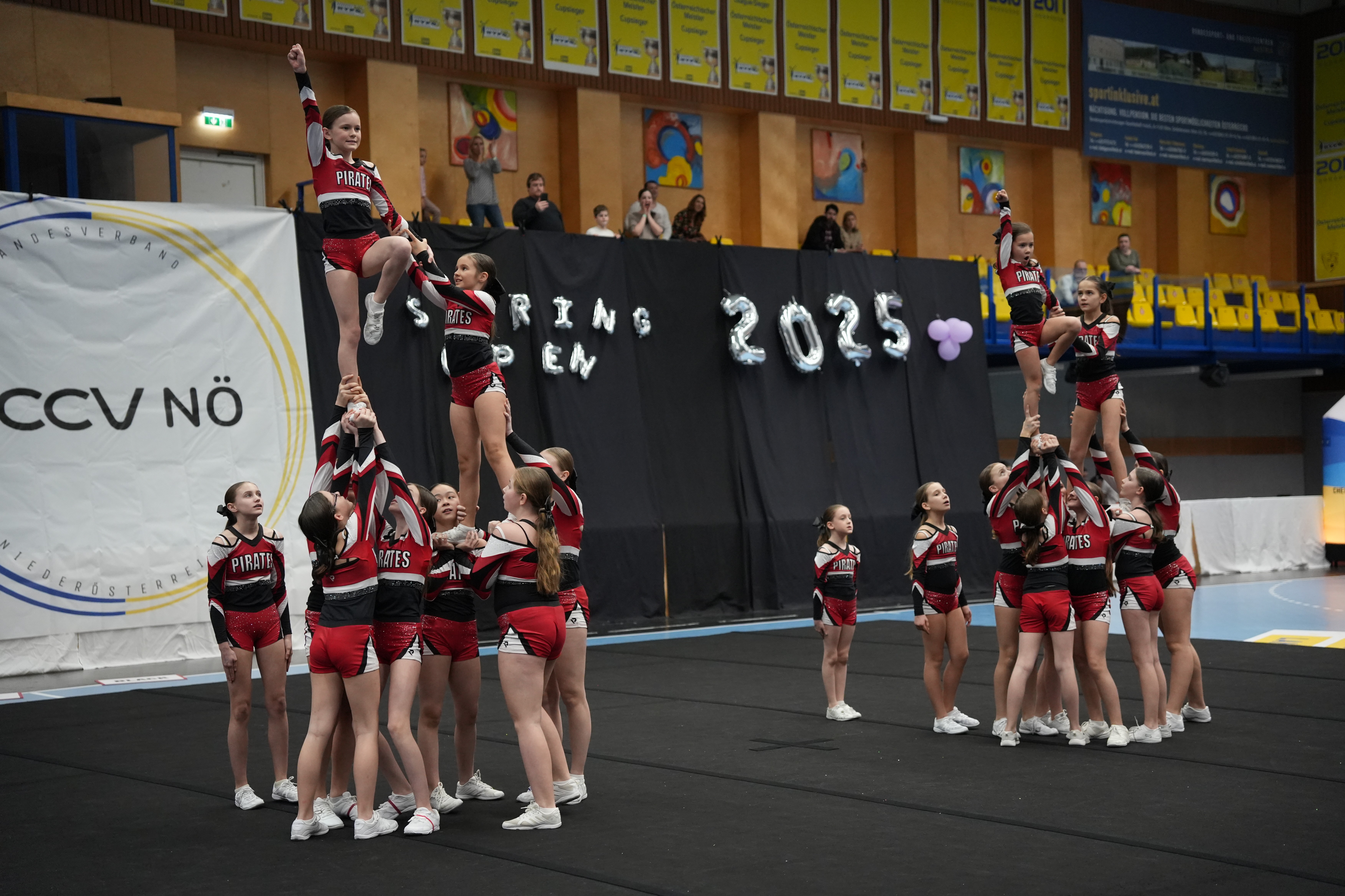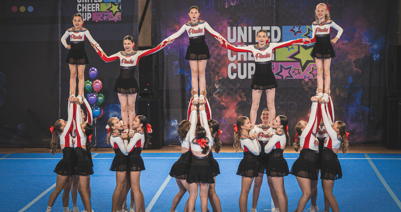 Unsere dynamischen Auftritte mit starken Choreografien, bei denen spektakuläre Stunts, präzise Pyramiden und energiegeladene Cheers im Mittelpunkt stehen, kennzeichnen uns aus. Wir nehmen regelmäßig an nationalen und internationalen Wettkämpfen teil und streben stets nach Weiterentwicklung – im sportlichen sowie im persönlichen Sinne.