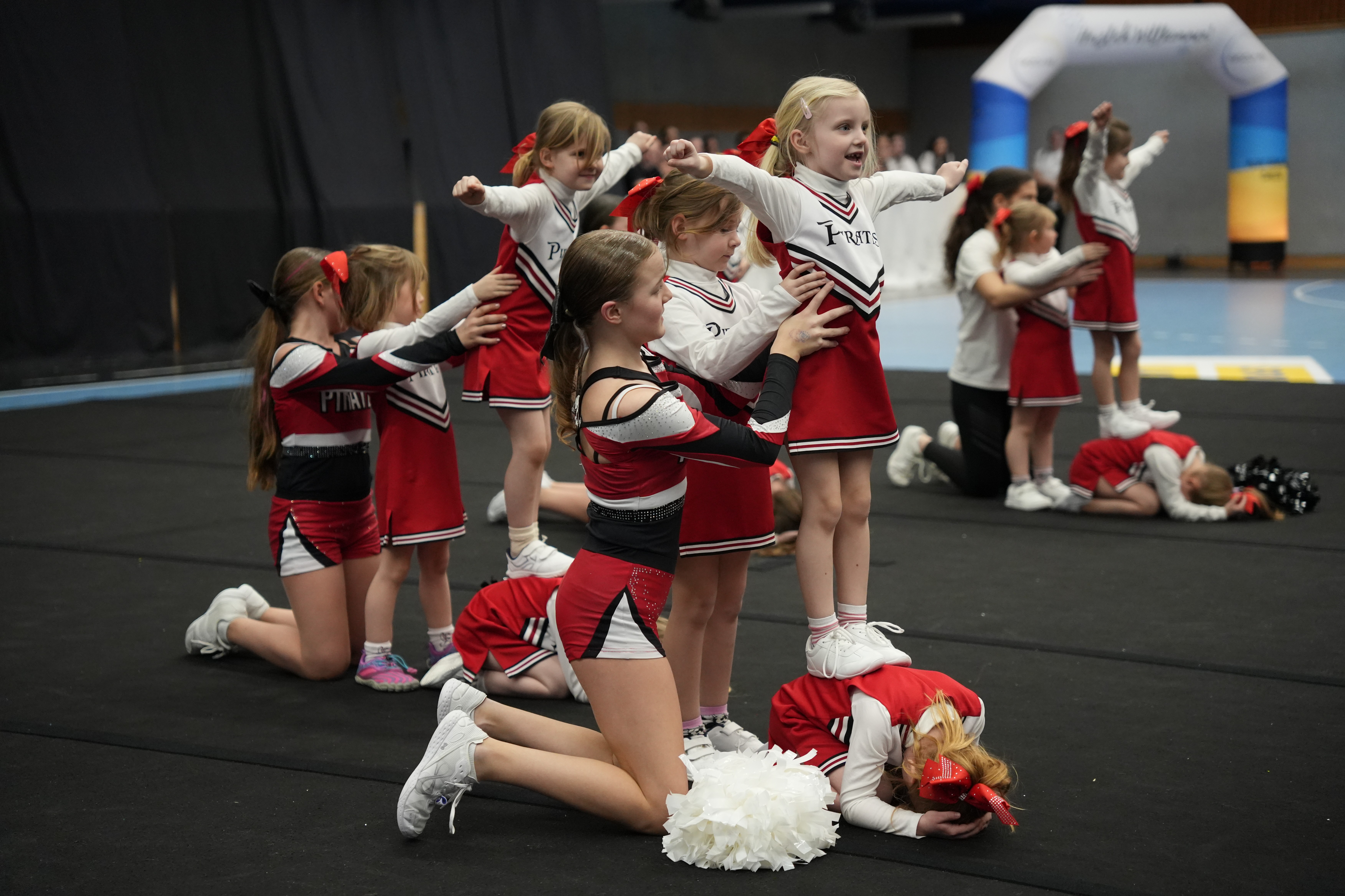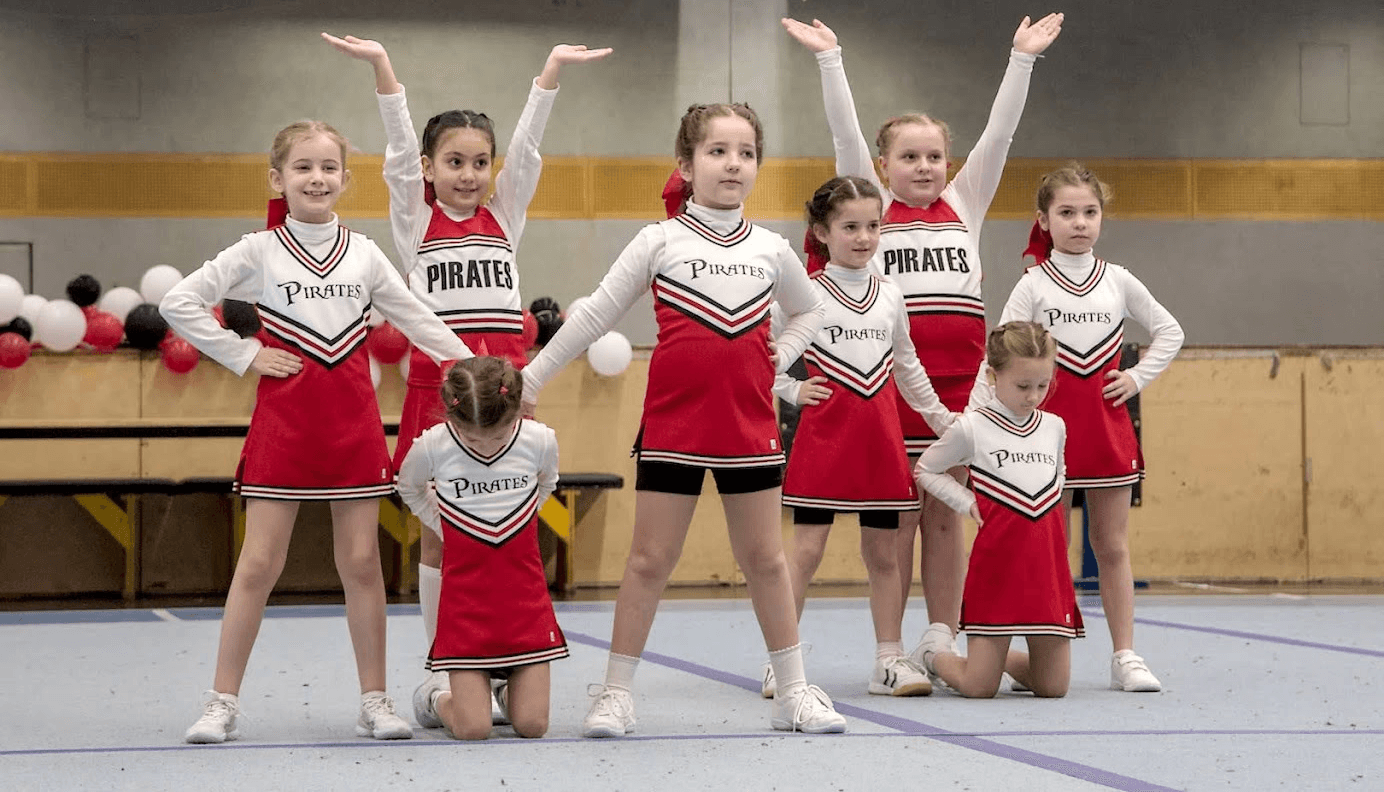 Ein Einstieg ist bei uns bereits ab 4 Jahren, bei unseren Tiny Pirates, möglich. Nach oben hin gibt es keine Altersgrenzen: Auch erwachsene Cheerleader*innen finden bei unseren Gold Stars einen Platz.